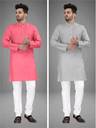 UNIQUE MOMENTS Pack of 2 Men Solid Cotton Blend Straight Kurta (Multicolor)