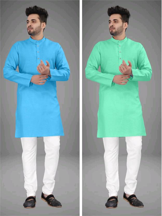 UNIQUE MOMENTS Pack of 2 Men Solid Cotton Blend Straight Kurta (Multicolor)
