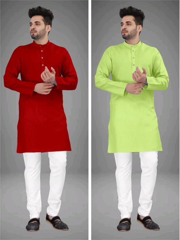 UNIQUE MOMENTS Pack of 2 Men Solid Cotton Blend Straight Kurta (Multicolor)