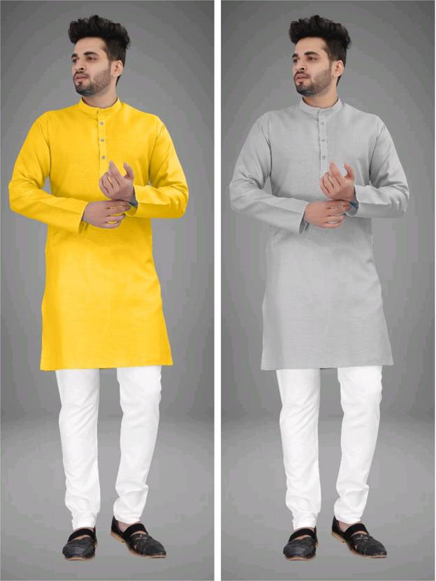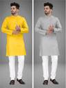 UNIQUE MOMENTS Pack of 2 Men Solid Cotton Blend Straight Kurta (Multicolor)