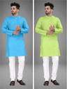 UNIQUE MOMENTS Pack of 2 Men Solid Cotton Blend Straight Kurta (Multicolor)