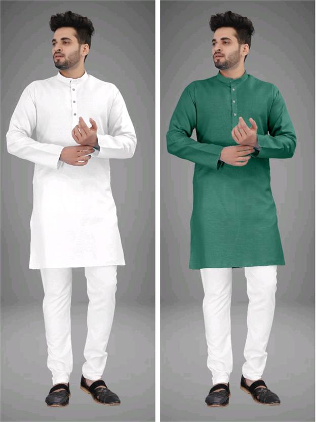 UNIQUE MOMENTS Pack of 2 Men Solid Cotton Blend Straight Kurta (Multicolor)