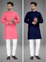 UNIQUE MOMENTS Pack of 2 Men Solid Cotton Blend A-line Kurta (Multicolor)