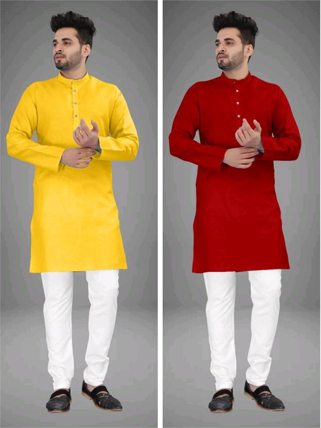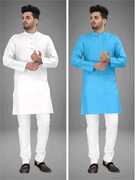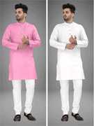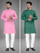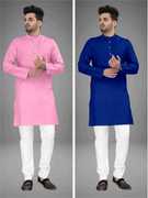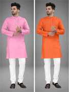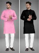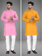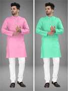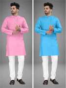 Pack of 2 Men Solid Cotton Blend Straight Kurta (Multicolor)