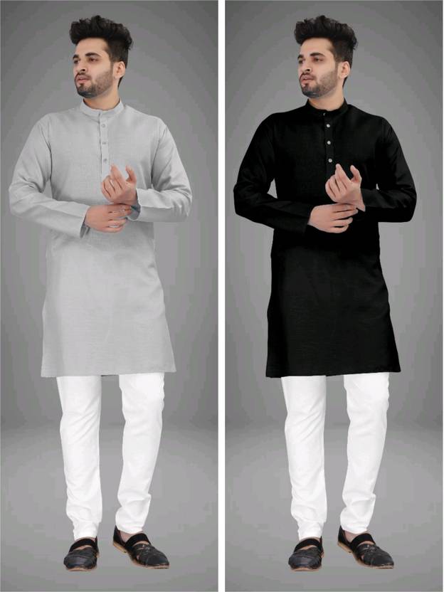 UNIQUE MOMENTS Pack of 2 Men Solid Cotton Blend Straight Kurta (Multicolor)