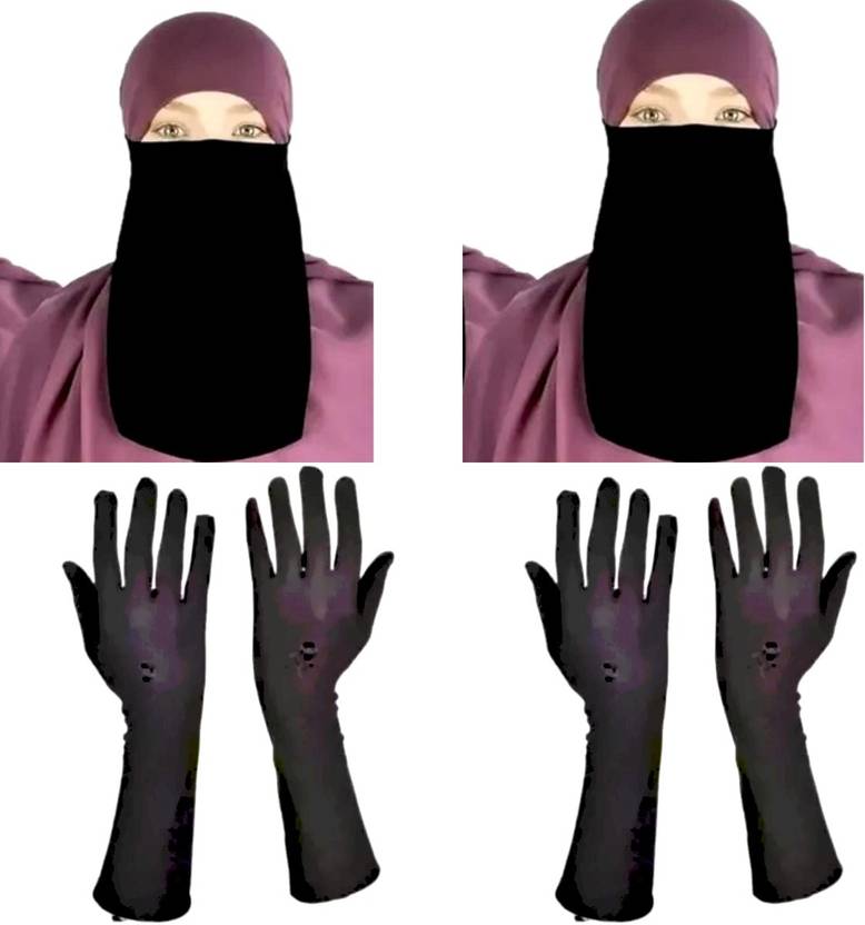 combo offer pack of 4 haf niqab 2 hand gl0ves pack of 2women and girls black color size free
