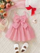 Dress your little princess in this adorable striped frock with a big bow design, made from soft and breathable fabric for all-day comfort. The sleeveless style and flared design make it perfect for summer, parties, birthdays, and casual outings. Available in multiple vibrant colors like Yellow, Purple, Blue, Sky Blue, Red, and Pink, this frock adds a cute and stylish charm to your baby girl’s wardrobe
