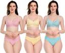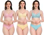Women's Cotton Half Padded Star print bra panty set Pack3