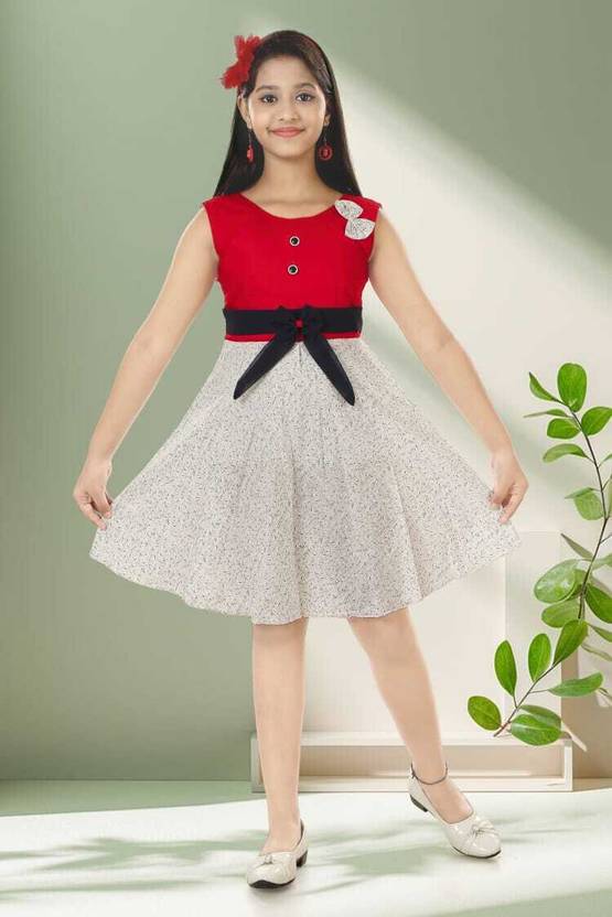 UniquePuja Baby Girls Midi/Knee Length Party Dress (Red, Sleeveless)