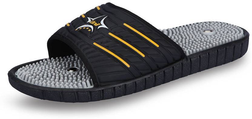 Slippers are the best way to keep your feet relaxed. This Unistar black slide has nodules on the insoles that gently stimulate acupressure points to improves overall health and wellness and alleviates stress. Looks great when teamed with a casual outfits.