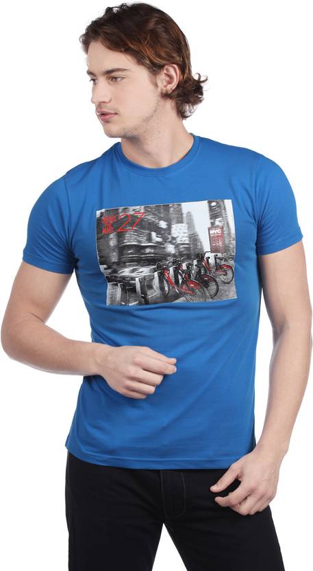 Flaunt this blue printed T-shirt with light coloured jeans and slip into your favourite pair of sneakers for a stunning casual look. T-shirts from Unit 27 are designed to celebrate the free spirit of youth. With an array of attractive colours and designs, these T-shirts satisfy the casual needs of the fashion conscious with unparalleled value for money.