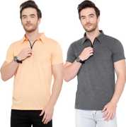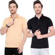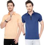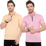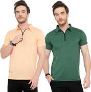 2 Half Sleeve Polo Neck T-shirt with Zip Neck ( Peach, Bottle Green )