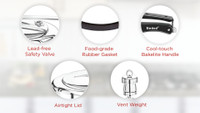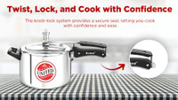 Featuring a food-grade rubber construction, this pressure cooker ensures safe and reliable cooking. The food-grade rubber gasket creates an airtight seal, while the lead-free safety valve adds extra security during use. The cool-touch Bakelite handle offers easy handling, even when the cooker is hot. The combination of these materials ensure the cooker remains durable and functional, even with frequent use.
