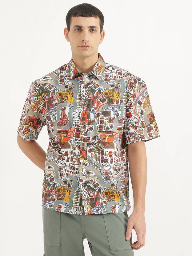 United Colors of Benetton Men Printed Casual Grey Shirt