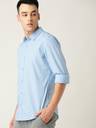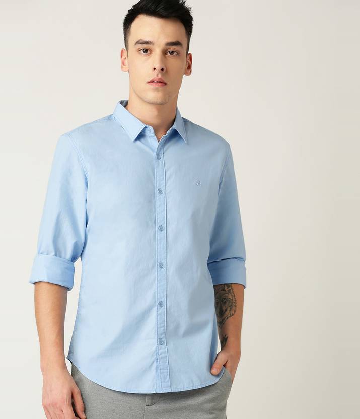 United Colors of Benetton Men Solid Casual Blue Shirt
