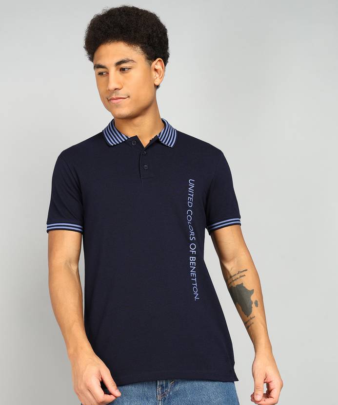 United Colors of Benetton Solid Men Polo Neck Dark Blue T-Shirt