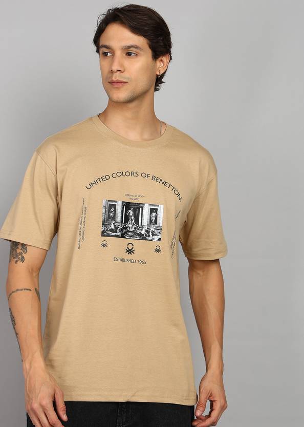 United Colors of Benetton Printed Men Round Neck Beige T-Shirt