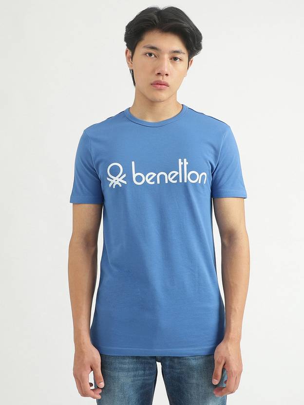 United Colors of Benetton Printed Men Round Neck Blue T-Shirt