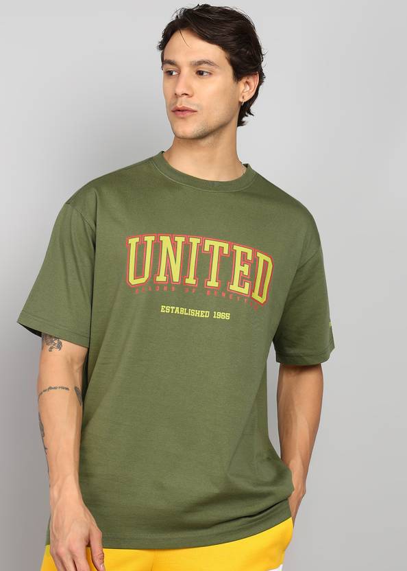 United Colors of Benetton Printed Men Round Neck Dark Green T-Shirt