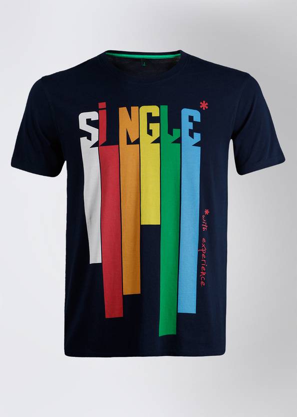 Add a fun facet to your casual look with this quirky and vibrant T-shirt from United Colors of Benetton. Second looks will be yours when you enjoy a cuppa with friends stylized in this blue printed T-shirt, faded denims and canvas shoes.