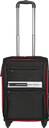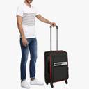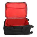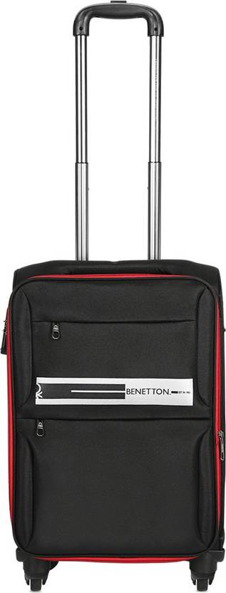 Fabric based and scratch resistant lightweight trolley suitcase, secured with a lock, One top handle, one side handle and one retractable trolley handle, 360 degree rotatable corner-mounted inline skate wheels Two main compartments secured with zip closure, has a lining, one has two elasticated tabs secured with click clasps, one zip pocket on the flap and the other has a mesh and a zip pocket