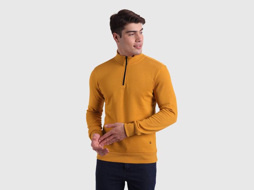 United Colors of Benetton Solid Men Mandarin Collar Yellow T-Shirt
