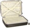 solid water-resistant and lightweight trolley suitcase, secured with a lock, 360 degree rotatable corner-mounted inline skate wheels, Two main compartments secured with zip closure, has a lining inside.