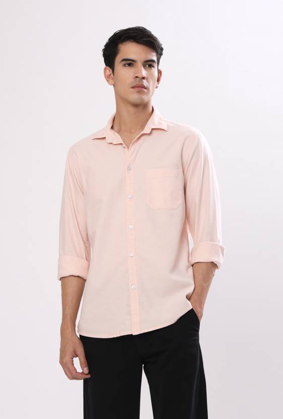 UNITED DENIM Peach solid casual shirt, has a spread collar,long sleeves, curved hem, 1 pocket You'll love the design of this high-fashion UNITED DENIM shirt. For a night at the movies or casual dinner date, team this Peach shirt with slim trousers and light jacket.
