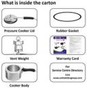 Complete Pressure Cooker -1U, Instruction Manual -1U, Rubber Gasket -1U, Saftey Valve -1U