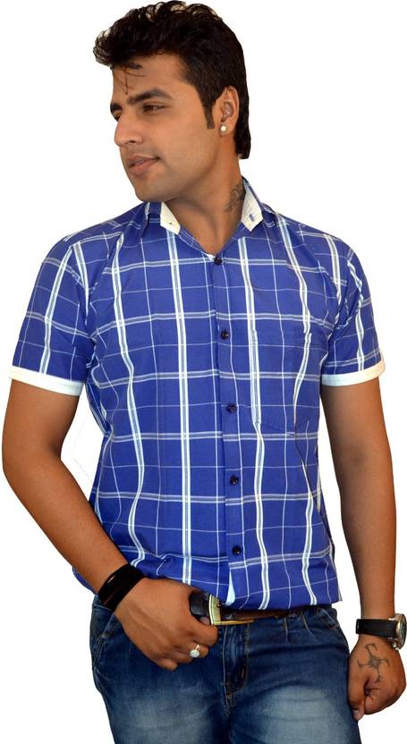 united polo hills Self Design Men Slim Fit Checkered Cut Away Collar Formal Shirt