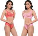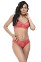 Unitrust Bra & Panty Set Self Design Red, Pink Lingerie Set