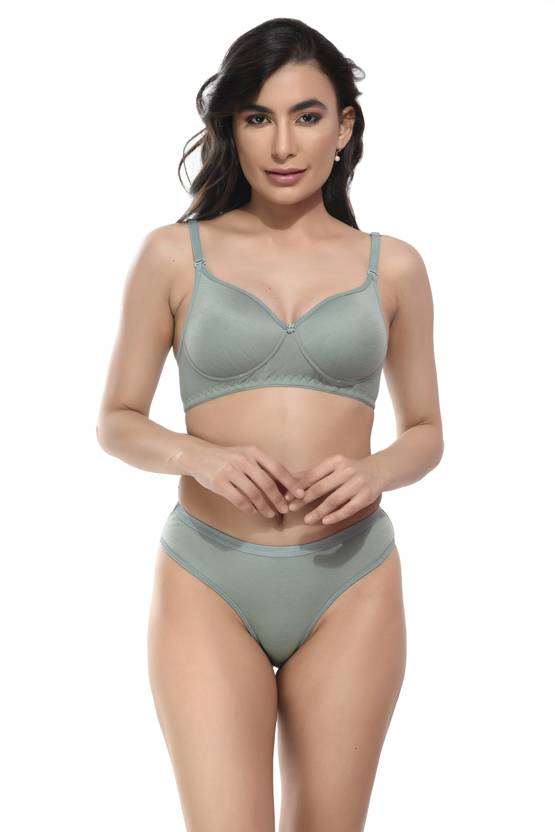 Unitrust Bra & Panty Set Printed Green Lingerie Set