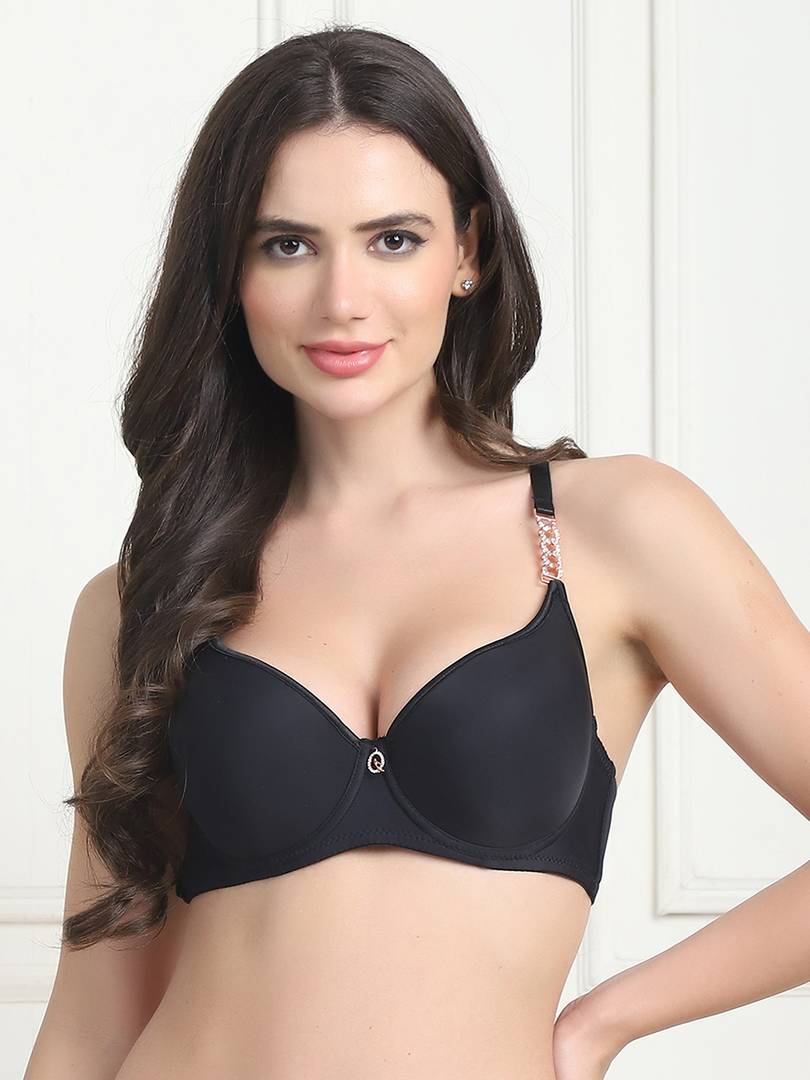 Designer Women's Bra Panty Set Lace Push Up Solid Lingerie Set