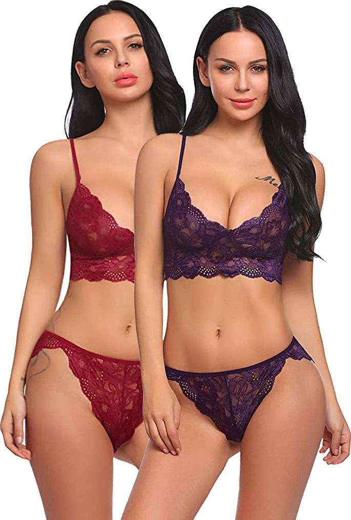 Unitrust Designer Women's Bra Panty Set Lace Push Up Solid Lingerie Set Lingerie Set