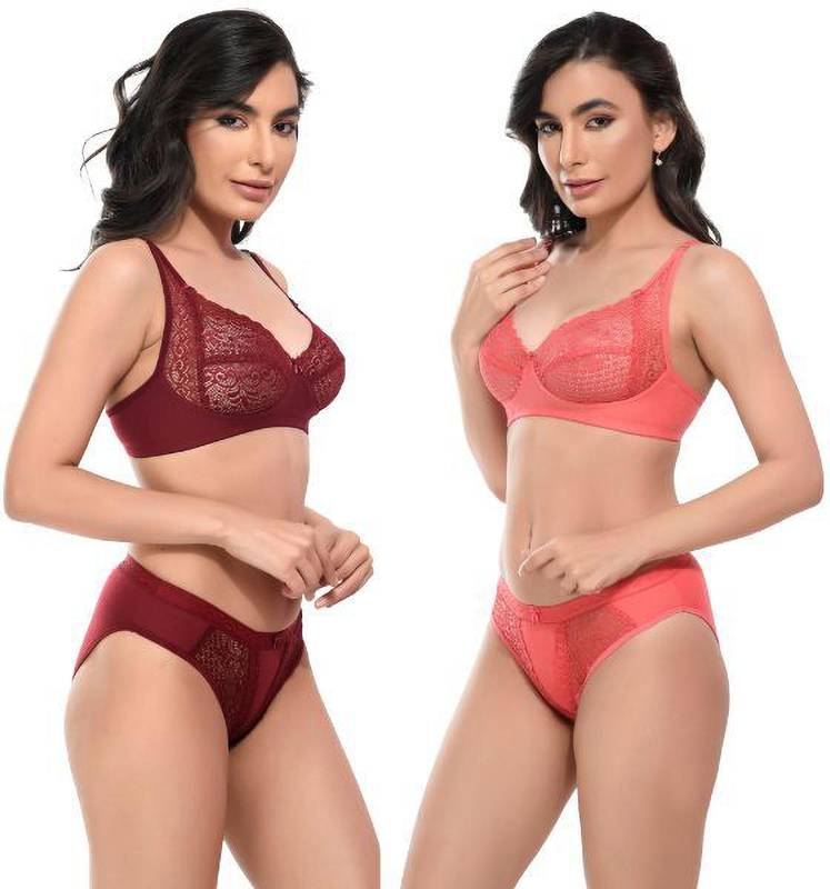 Bridal and honeymoon lingerie sets, beach wear lingerie sets, and swimwear bra panty sets are all made of very comfortable, and breathable 100% imported fabric to offer you the luxurious look you deserve. (1) Material: Honeymoon gorgeous Lingerie Set in Lace and Cotton. (2) Closure: 3-hook and eye back closure, movable straps, soft elastic and straps. Full coverage, seamless, unwired, and unpadded bra and panty set are the three different types of bras.