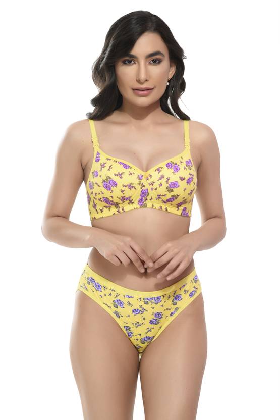 Unitrust Bra & Panty Set Printed Yellow Lingerie Set