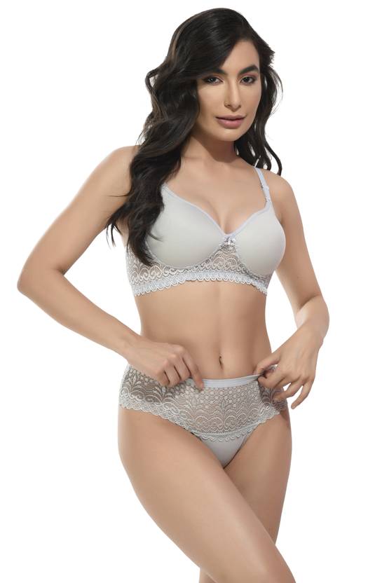 Unitrust Bra & Panty Set Self Design Grey Lingerie Set