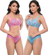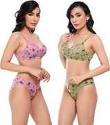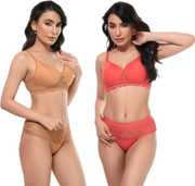 Bridal and honeymoon lingerie sets, beach wear lingerie sets, and swimwear bra panty sets are all made of very comfortable, sexy, and breathable 100% imported fabric to offer you the luxurious look you deserve. (1) Material: Honeymoon gorgeous Lingerie Set in Lace and Cotton. (2) Closure: 3-hook and eye back closure, movable straps, soft elastic and straps. Full coverage, seamless, unwired, and unpadded bra and panty set are the three different types of bras.