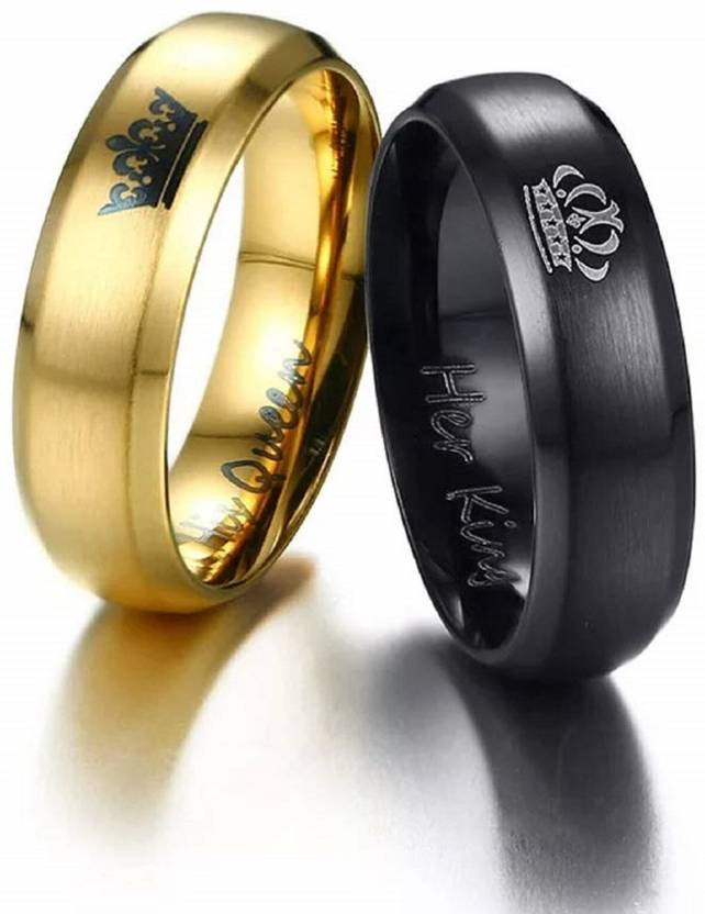 2PCS Her King His Queen Black Titanium Stainless Steel Couple Rings