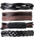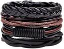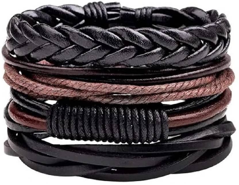 University Trendz Genuine Leather Dyed Rope Multi Strand Wrist Band Bracelet Men and Women (Set of 4)