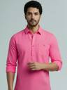 Univibe Men Solid Cotton Blend A-line Kurta (Pink)