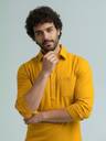 FireFish Men Solid Cotton Blend A-line Kurta (Yellow)