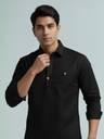 KNOWTED Men Solid Cotton Blend A-line Kurta (Black)