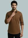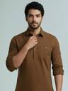 Univibe Men Solid Cotton Blend A-line Kurta (Gold)