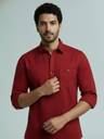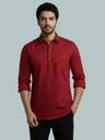 FireFish Men Solid Cotton Blend A-line Kurta (Maroon)