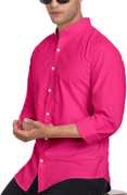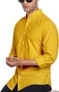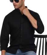 Men Slim Fit Solid Mandarin Collar Casual Shirt