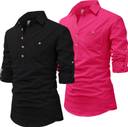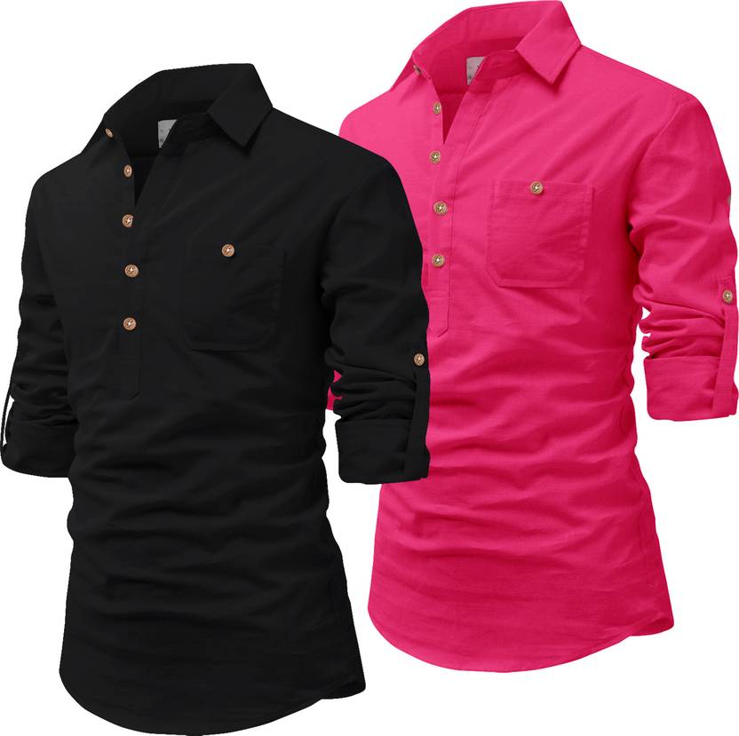 Univibe Men Solid Pathani Kurta (Pink, Black)