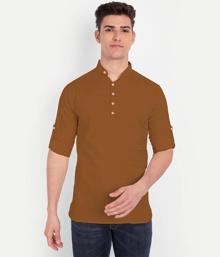 Men Solid Pure Cotton Pathani Kurta (Brown)
