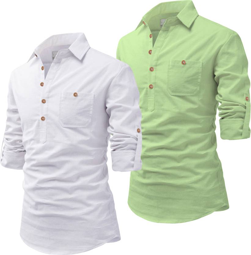 Univibe Men Solid Pathani Kurta (Light Green, White)