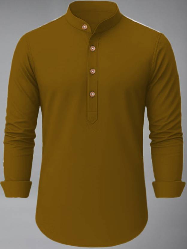Men Solid Cotton Blend Straight Kurta (Gold)